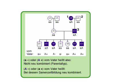 2. Erkennung der Rekombinanten 2.2 Überlegen Sie nun, woran man die Parentaltypen ("nonrecombinants") in der F2 ("offspring") erkennen kann? Als Hilfe kann man sich die Genotypen zu den Personen schreiben |